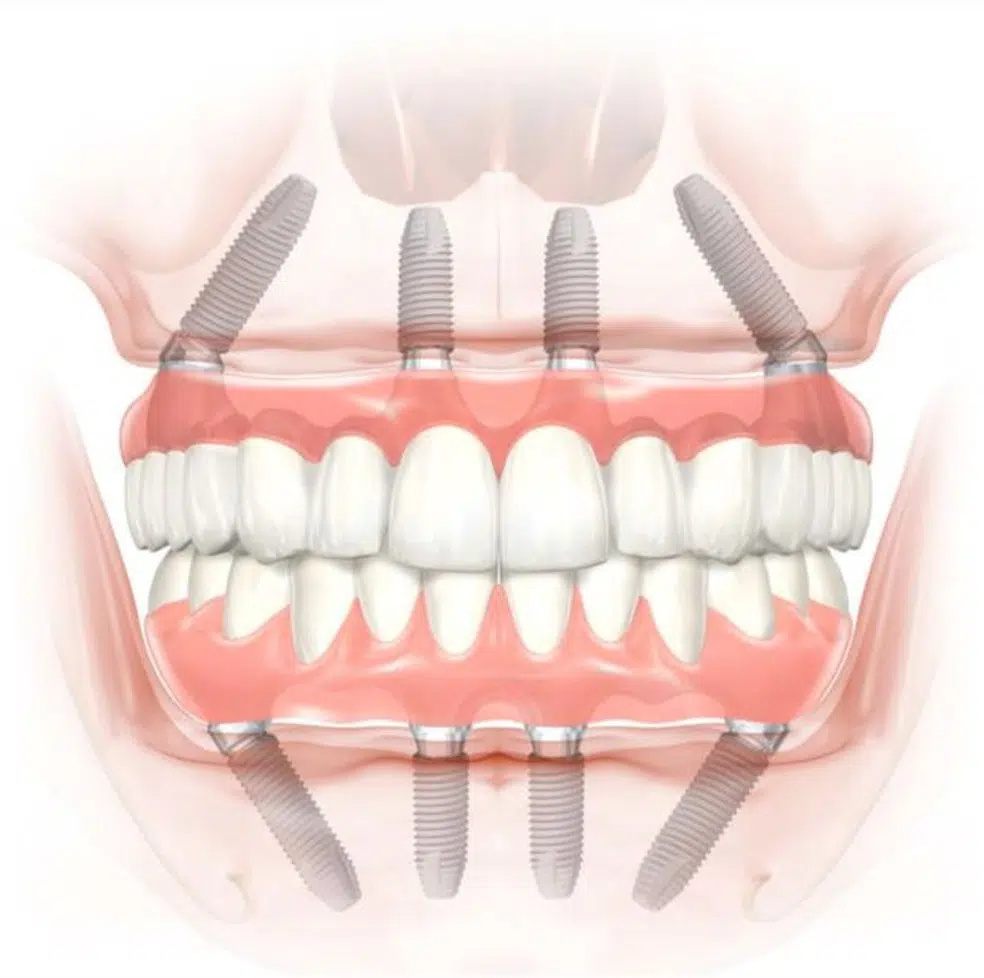 O protocolo All-On-4 é um tipo de implante com uma técnica inovadora, onde a prótese dentária é fixada por apenas quatro implantes, colocados em pontos estratégicos, num ângulo de 45°.
